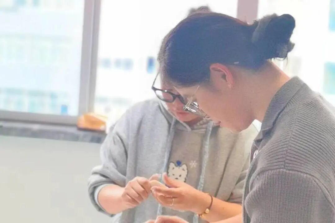 比賽現(xiàn)場暖意融融、熱鬧非凡。參賽選手們捋起袖子、各展絕技,手法嫻熟、速度飛快,眨眼間一排排飽滿的餃子整齊排列;有的創(chuàng)意十足、造型別致,將普通的餃子捏成月牙形、金魚形,盡顯巧思。現(xiàn)場歡聲笑語不斷,空氣中彌漫著面粉的清香與食材的鮮香,同事間的默契配合與相互打趣,讓整個多功能室充滿了家的溫馨。