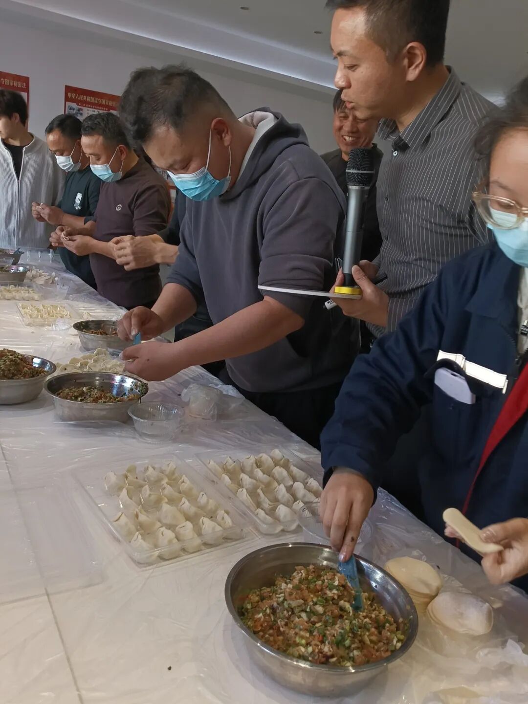 本次活動以“冬至大如年,餃子暖心田”為主題,自籌備之初便得到了公司上下的熱烈響應;顒踊I備小組在組長何威龍的統(tǒng)籌下,各成員分工明確、高效協(xié)作,從食材采購、場地布置到選手甄選、評委組建,每一個環(huán)節(jié)都精心打磨。5名專業(yè)評委秉持公平公正原則,從數(shù)量與質量兩大維度對參賽作品進行綜合評分,既考驗選手的包餃子速度,更注重餃子的外觀造型與工藝細節(jié)。